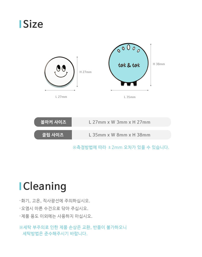 [사이즈] 볼마커 27Wx27H(mm) / 자석클립 35Wx38H(mm)